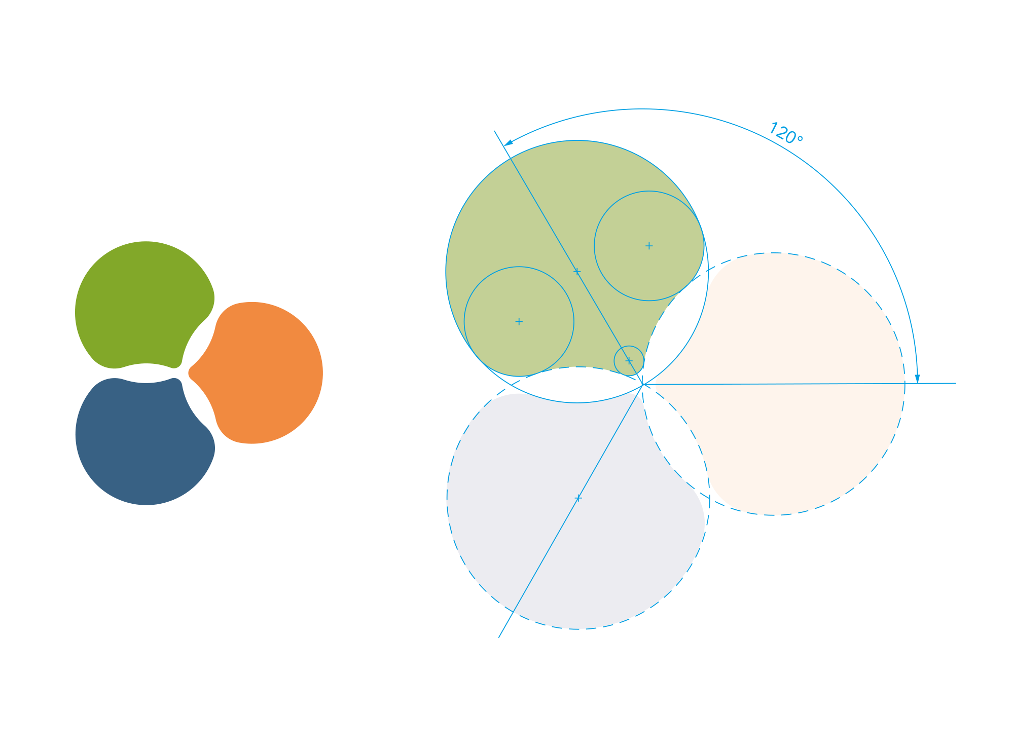Il nuovo logo nasce dall’interpretazione della foglia di Ginkgo, pianta simbolo di resilienza e longevità. Tre forme astratte, equidistanti e armoniche, rappresentano i tre ambiti di attività e si uniscono in una composizione organica e bilanciata. La palette cromatica — verde, arancione, blu — traduce visivamente natura, energia e affidabilità, mentre il logotipo adotta un segno tipografico essenziale e contemporaneo.